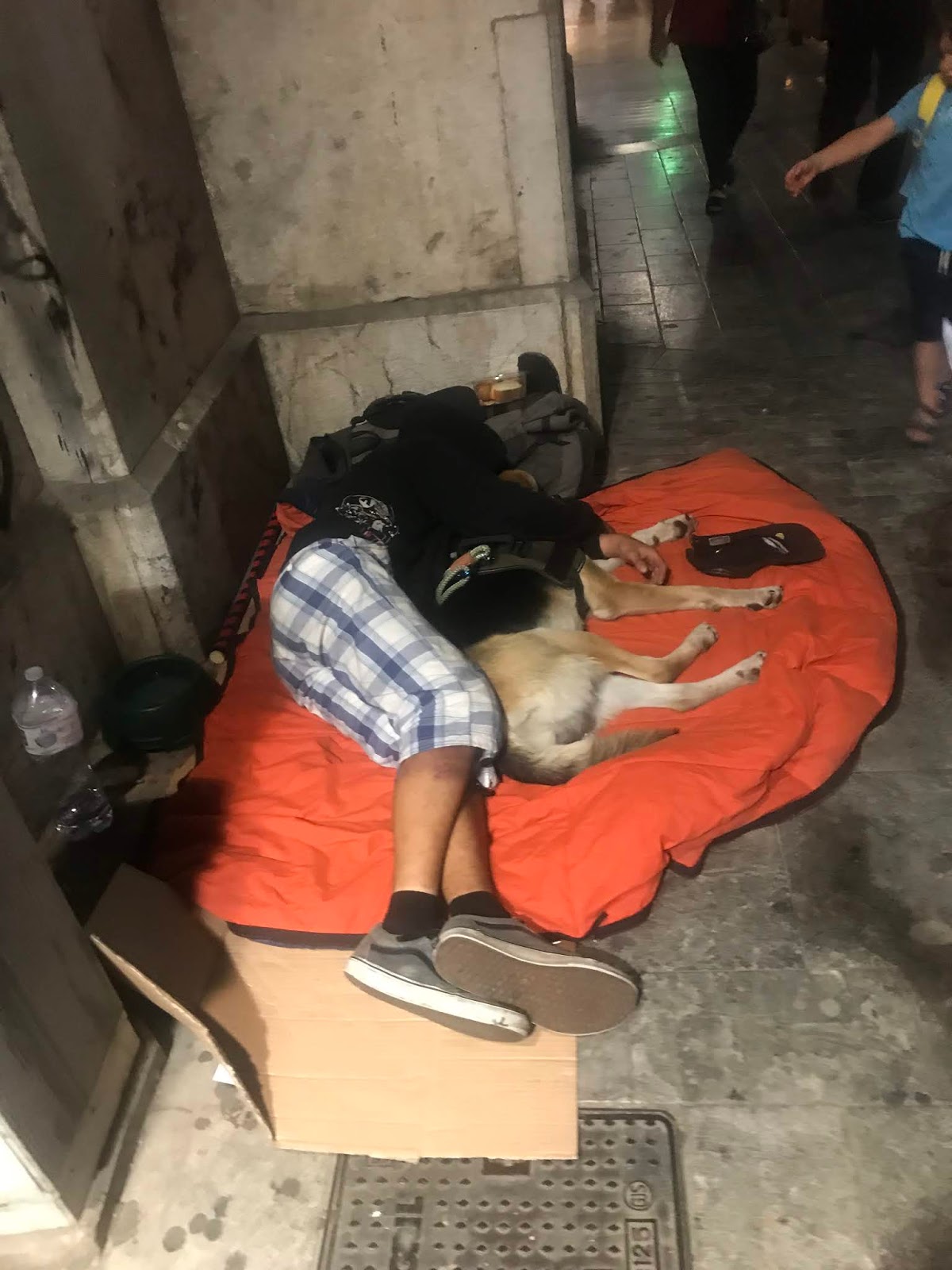 But what really caught our attention was this...A homeless man sleeping on the street hugging his dog.